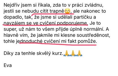 Protože když se ve svém těle cítíš dobře a umíš zvládat stres, práce ti jde hned rychleji.